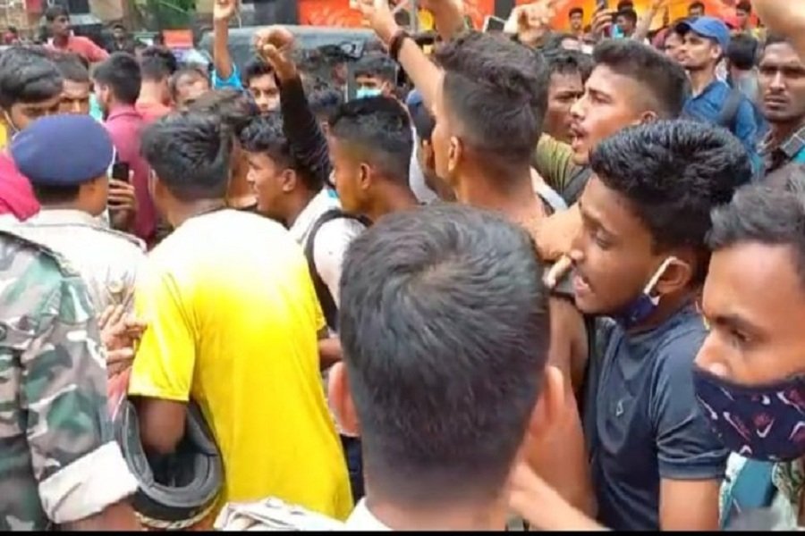 रांची: अग्निपथ भर्ती योजना का विरोध झारखंड में शुरू हो गया है। केंद्र सरकार और इंडियन आर्मी द्वारा अग्निपथ भर्ती योजना को लेकर सफाई दिये जाने के बावजूद गुरुवार को राजधानी रांची के मेन रोड में सेना भर्ती कार्यालय के बाहर सैकड़ों युवाओं द्वारा प्रदर्शन किया गया।