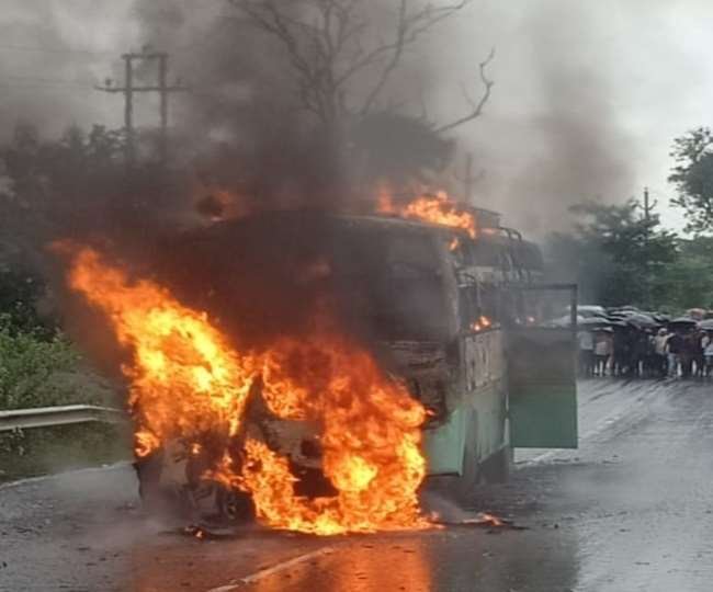 जान बचा कर भागे बस यात्री