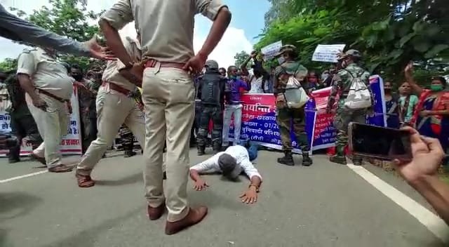 इन अभ्यर्थियों में पंचायत सेवा संघ , जिला सहायक पुलिस बल , जेटेट अभ्यार्थी , झारखंड सशस्त्र बल पुलिस संगठन , ऐसे कई और अभ्यर्थी हैं जिनकी नियुक्ति नहीं हो पाई है । ये तमाम अभ्यर्थी हैं जिन्होंने प्रदेश सरकार द्वारा आयोजित प्रतियोगिता परीक्षाओ को उत्तीर्ण कर चुके हैं पर पिछले कुछ वर्षों से इन्हें नियुक्ति पत्र की जगह केवल आश्वासनों का लॉली पॉप प्रदेश सरकारों द्वारा थमाया जा रहा है चाहे किसी भी सरकार सत्ता में हो। ऐसे में ये सारे अभ्यर्थियों ने आज मुख्यमंत्री हेमंत सोरेन के 46वें जन्मदिन के अवसर पर अपने पूर्व घोषित कार्यक्रम के अनुसार मुख्यमंत्री आवास का घेराव करने निकले थे पर इन्हें पुलिस प्रशासन के दाम पर मोराबादी मैदान में रोका गया। जहां ये अभ्यर्थी लगातार हेमंत सोरेन हाय हाय , प्रदेश सरकार होश।में आओ , भीख नही हम अपना हक मांगते। वही दूसरी ओर आन्दोलनरत कुछ छात्रों की तबियत भी खराब हुई जिसे प्रशासन के सहयोग से आंदोलन स्थल से हटा कर अस्पताल पहुँचाया गया। वही मौके पर झारखंड जिला पुलिस , रैपिड एक्शन पुलिस के जवान भी मौजूद हैं।