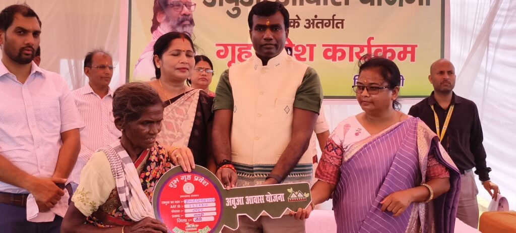आज नगड़ी प्रखण्ड के साहेर पंचायत निवासी अजय नायक और उनकी पत्नी की खुशी का ठिकाना नहीं था। उपायुक्त-सह-जिला दण्डाधिकारी श्री मंजूनाथ भजन्त्री अबुआ आवास योजना अंतर्गत गृह प्रवेश कार्यक्रम में उनके आवास पहुंचे थे। उन्होंने जिला परिषद अध्यक्ष, सदस्य एवं लाभुक के साथ फीता काटकर उनका गृह प्रवेश कराया। इस दौरान उपविकास आयुक्त, रांची श्री दिनेेश कुमार यादव, प्रखंड विकास पदाधिकारी, अंचल अधिकारी एवं अन्य संबंधित पदाधिकारी/कर्मी उपस्थित थे।