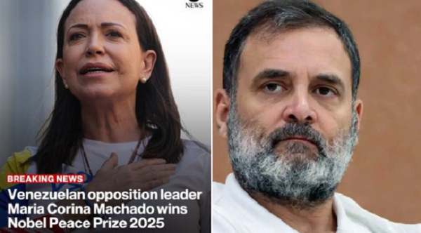 कांग्रेस नेता राजपूत ने सोशल मीडिया पर मचाडो और राहुल गांधी की एक साथ फोटो शेयर की. उन्होंने लिखा, “इस बार शांति का नोबेल पुरस्कार वेनेजुएला के विपक्षी नेता को संविधान की रक्षा के लिए दिया गया है. भारत के विपक्षी नेता राहुल गांधी भी देश के संविधान को बचाने की लड़ाई का नेतृत्व कर रहे हैं.”