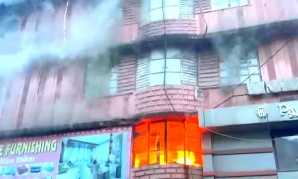 राजधानी के अपर बाजार स्थित महावीर चौक के शर्मा टॉवर में गुरुवार सुबह भीषण आग लग गयी. जिससे पूरे इलाके में अफरा तफरी मच गयी. अगलगी की घटना सबसे शर्मा टॉवर के फर्स्ट फ्लोर में हुई. इसके बाद यह आग पूरी बिल्डिंग को अपनी चपेट में ले लिया. आग कैसे लगी इसकी स्पष्ट जानकारी अभी तक नहीं मिल सकी है. स्थानीय लोगों ने घटना की सूचना पुलिस को दी. इसके बाद इसकी जानकारी अग्निशमन विभाग को दी गयी. दमकल गाड़ियां मौके पर पहुंच चुकी है और आग पर काबू पाने का प्रयास कर रही है.