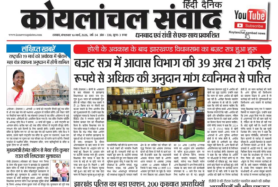 • Koylanchal Samvad e-paper | 10th March | Ranchi