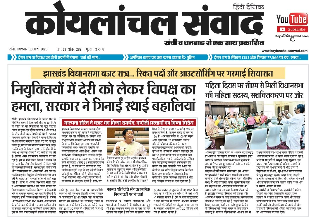 • Koylanchal Samvad e-paper | 10th March | Ranchi
