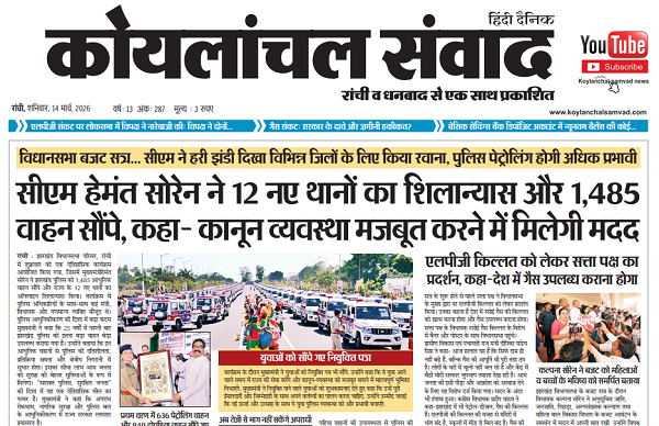 • Koylanchal Samvad e-paper | 14th March | Ranchi