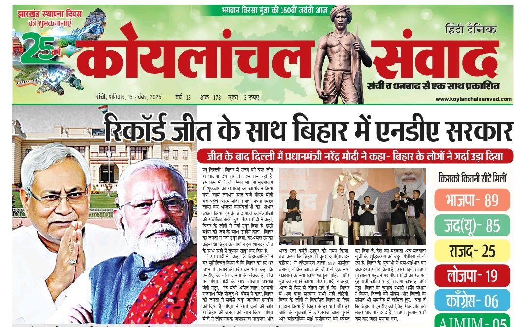 Koylanchal Samvad e-paper | 15th Nov | Ranchi