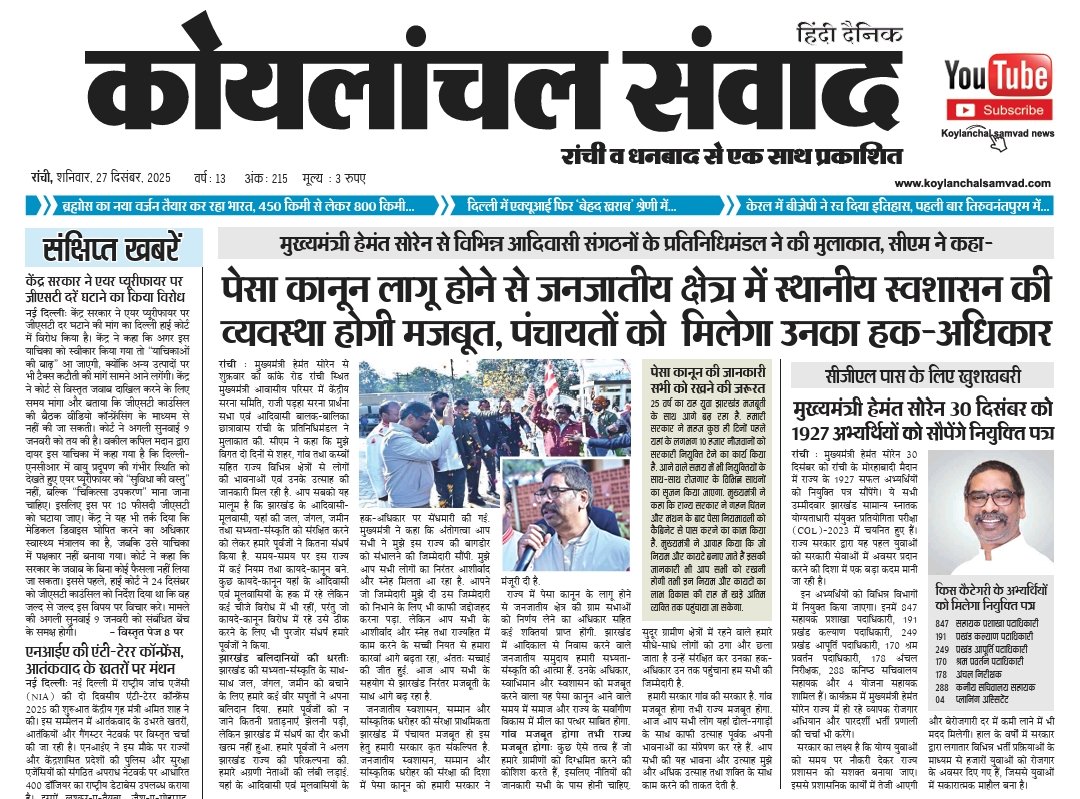 • Koylanchal Samvad e-paper | 27th Dec | Dhanbad