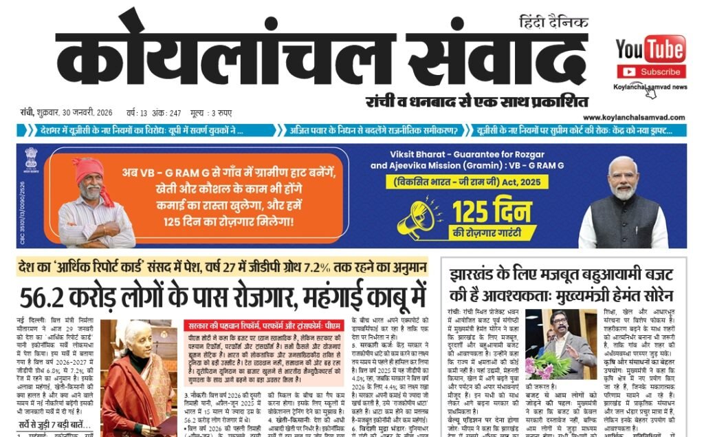 Koylanchal Samvad e-paper | 30th Jan | Ranchi