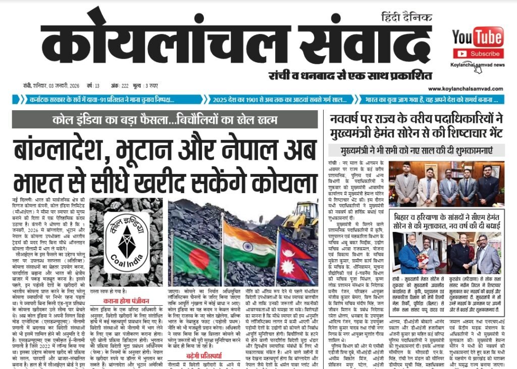 Koylanchal Samvad e-paper | 3rd Jan | Ranchi