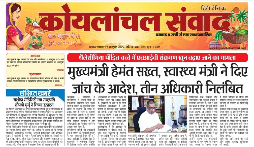 • Koylanchal Samvad e-paper | Ranchi | 27th Oct