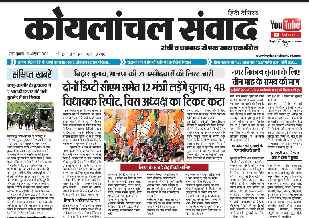 • Koylanchal Samvad e-paper | Ranchi | 15 oct
