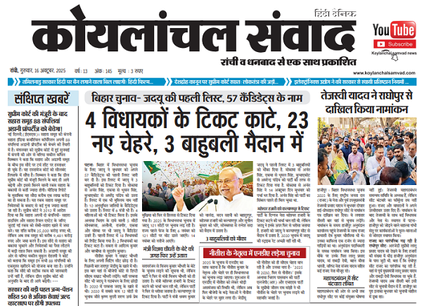 रांची में ACB की बड़ी कार्रवाई: सिटी डीएसपी के रीडर सुनील पासवान 10 हजार की रिश्वत लेते रंगेहाथ गिरफ्तारOctober 16, 2025