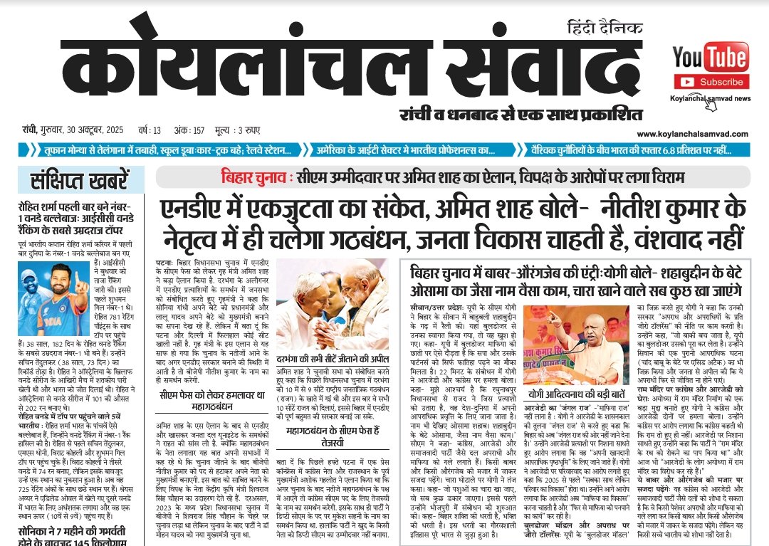 झारखंड के सभी नगर निकायों में नए परिसीमन नियम लागू: अब जनसंख्या के आधार पर तय होंगे वार्ड और आरक्षणOctober 30, 2025
