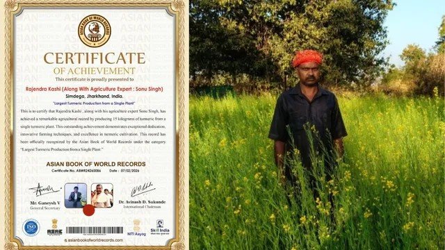 झारखंड के सिमडेगा जिले के टिनगीना गांव के किसान राजेंद्र काशी ने जैविक खेती के क्षेत्र में ऐसा कीर्तिमान स्थापित किया है, जिसने पूरे राज्य को गौरवान्वित कर दिया है। राजेंद्र काशी ने एक ही हल्दी के पौधे से करीब 15 किलोग्राम हल्दी का उत्पादन कर एशियन बुक ऑफ वर्ल्ड रिकॉर्ड में अपना नाम दर्ज कराया है।