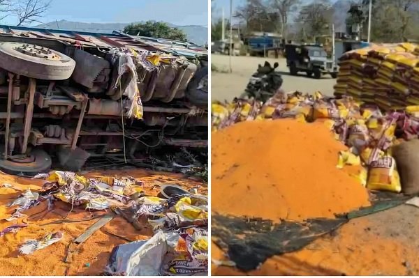 कोडरमा घाटी में भीषण टक्कर: दो ट्रक पलटे, हादसे के बाद 500 बोरा दाल की लूट से मचा हड़कंप