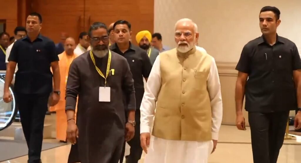 दिल्ली: प्रधानमंत्री नरेंद्र मोदी ने आज दिल्ली में नीति आयोग की बैठक के दौरान तमिलनाडु के मुख्यमंत्री एमके स्टालिन, आंध्र प्रदेश के मुख्यमंत्री एन चंद्रबाबू नायडू, पंजाब के मुख्यमंत्री भगवंत मान, झारखण्ड के मुख्यमंत्री हेमंत सोरेन, तेलंगाना के मुख्यमंत्री रेवंत रेड्डी और अन्य मुख्यमंत्रियों के साथ बातचीत की।