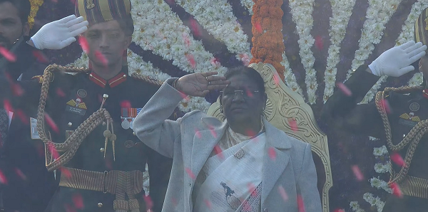 राष्ट्रपति द्रौपदी मुर्मू, यूरोपीय परिषद के अध्यक्ष एंटोनियो लुइस सैंटोस दा कोस्टा और यूरोपीय आयोग की अध्यक्ष उर्सुला वॉन डेर लेयेन के साथ दिल्ली के कर्तव्य पथ स्थित सलामी मंच पर परेड देखने पहुंचीं। ये दोनों विदेशी गणमान्य व्यक्ति 77वें गणतंत्र दिवस समारोह के मुख्य अतिथि हैं।