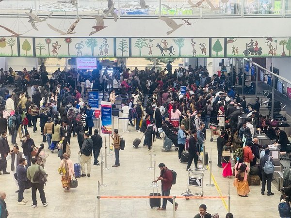 बिरसा मुंडा विमानपतन रांची की इंडिगो की सारी फ्लाइट कैंसिल होने से एयरपोर्ट में अफरा-तफरी