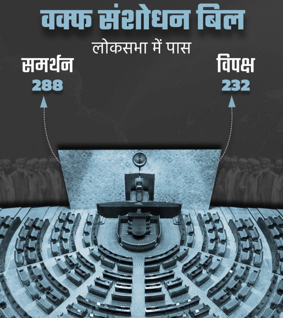 वक्फ संशोधन विधेयक लोकसभा से पास हो गया। 12 घंटे से ज्यादा समय तक चली मैराथन चर्चा के बाद लोकसभा ने वक्फ (संशोधन) विधेयक 2025 पारित कर दिया। इस विधेयक के पक्ष में 288 और विपक्ष में 232 वोट पड़े। स्पीकर ओम बिरला ने चर्चा पूरी होने के बाद वोटिंग करवाई। इस दौरान बिल के पक्ष में 288 वोट पड़े, वहीं विरोध में 232 वोट पड़े और इस तरह रात 2 बजे वक्फ संशोधन बिल लोकसभा से पास हो गया। इससे पहले सदन में गौरव गोगोई, औवैसी समेत कई सदस्यों की ओर से लाए गए संशोधन खारिज हो गए।